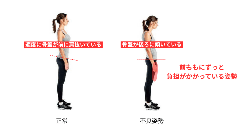 重心がズレて脚の筋肉が常に支えっぱなしに。